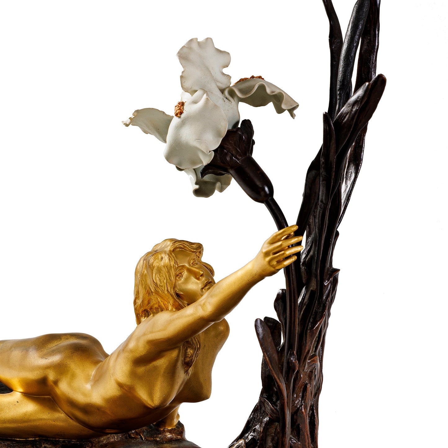 Charles Louchet "Iris at Dawn" Bronze & Porcelain Sculpture
