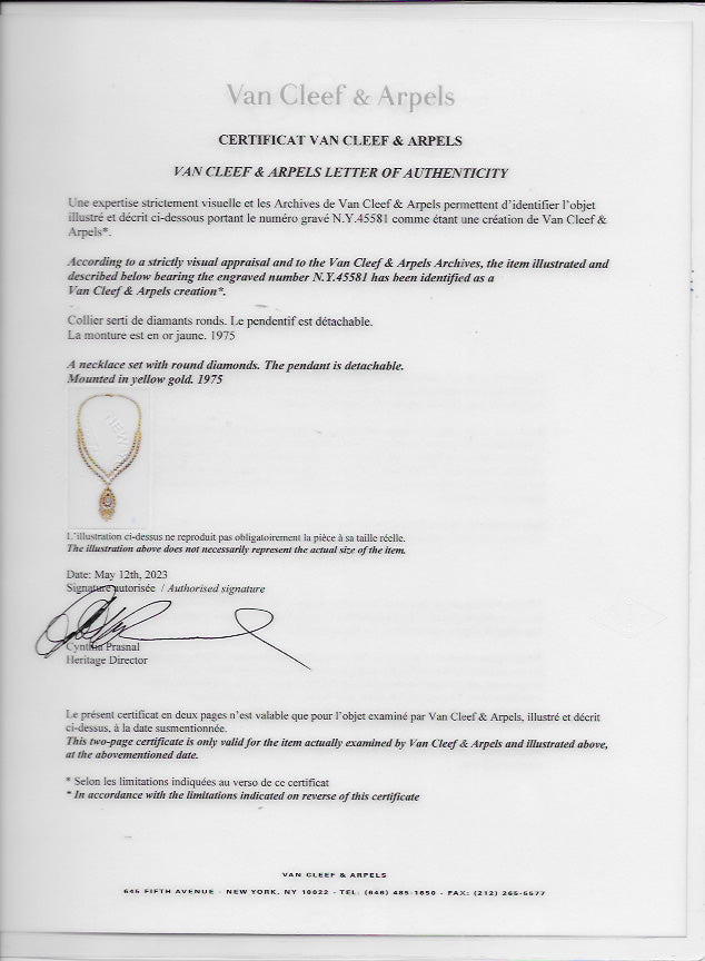Signed: Earrings: Van Cleef & Arpels N.Y. 43176; Necklace: Van Cleef & Arpels N.Y. 45581; with makers mark; Style Number: 585