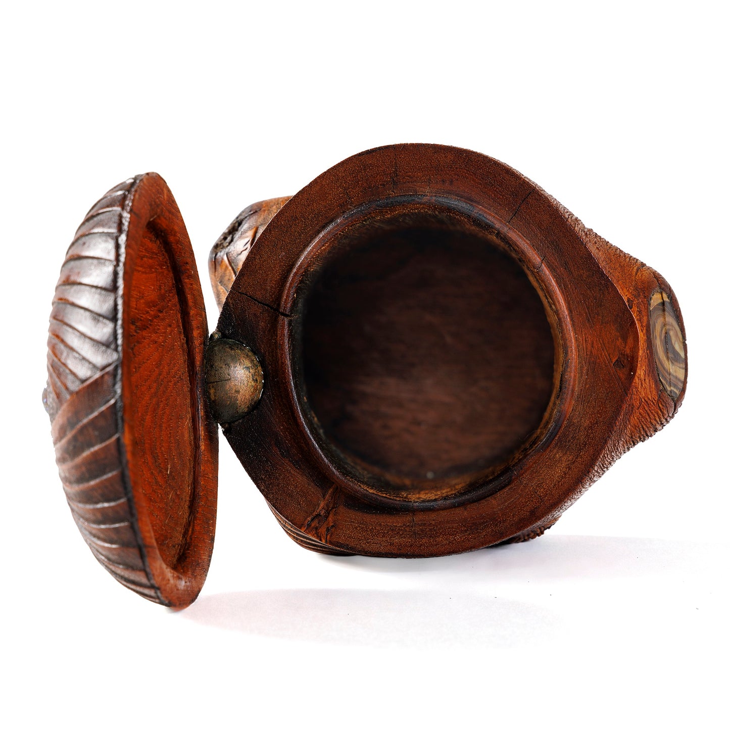 Condition Report: Wood with customary separations at the underside, which continue to visible bottom of humidor. Large inset cypriote with old stable crack. Top scarab with old stable crack diagonally across the center of the body. These imperfections are only visible on close inspection, none are visually distracting.