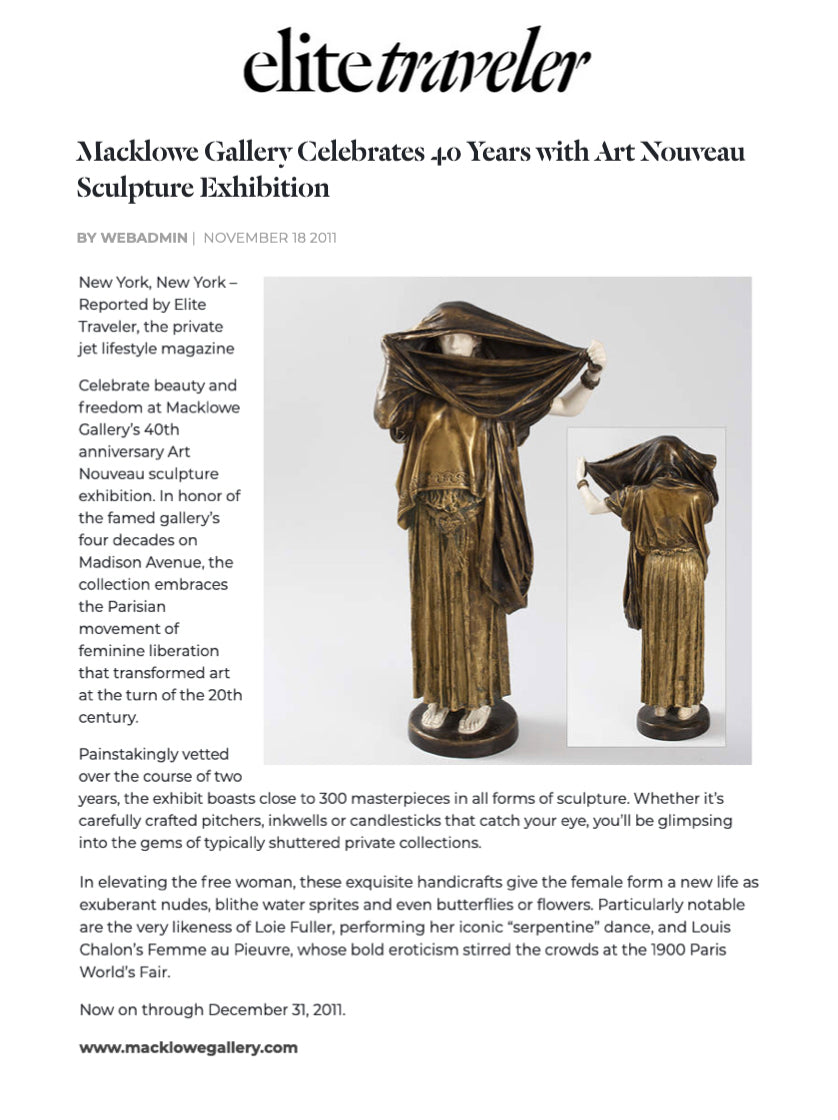 "Macklowe Gallery Celebrates 40 Years with Art Nouveau Sculpture Exhibition"