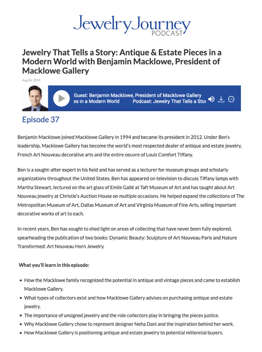 "Jewelry That Tells a Story: Antique & Estate Pieces in a Modern World, with Benjamin Macklowe, President of Macklowe Gallery"